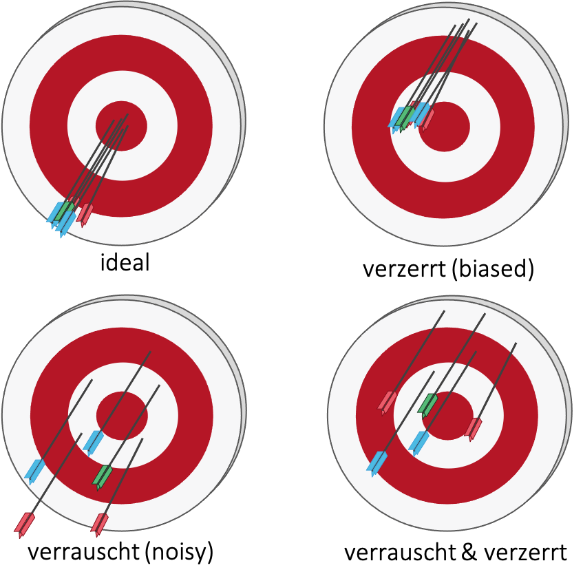 Ergebnis, wenn ein Teil der Informationen (vgl. beeinflusst durch Imperialismus und Faschismus) zu einem "falschen" Schluss führen würde. Die Beteiligten im System würden demnach alle das Ziel verfehlen, aber dennoch zu einem ähnlichen Ergebnis führen. title: Noisy and Biased (Grafik unten rechts)
