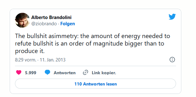 - Je verrückter eine Behauptung ist, desto schwieriger ist ein Gegenbeweis.